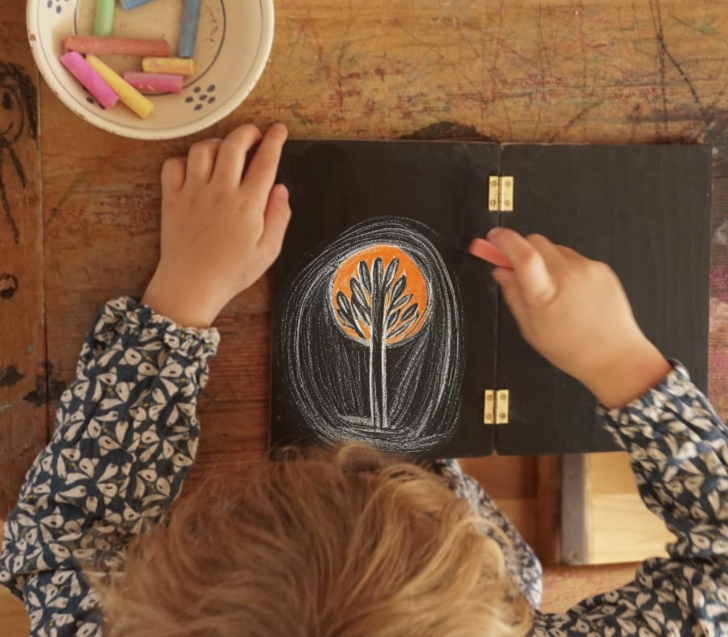Made with natural materials and a smooth, deep surface ideal for blending soft pastels, our chalkboards honor the rhythm of creation — a place where learning becomes art, and every lesson a living picture.